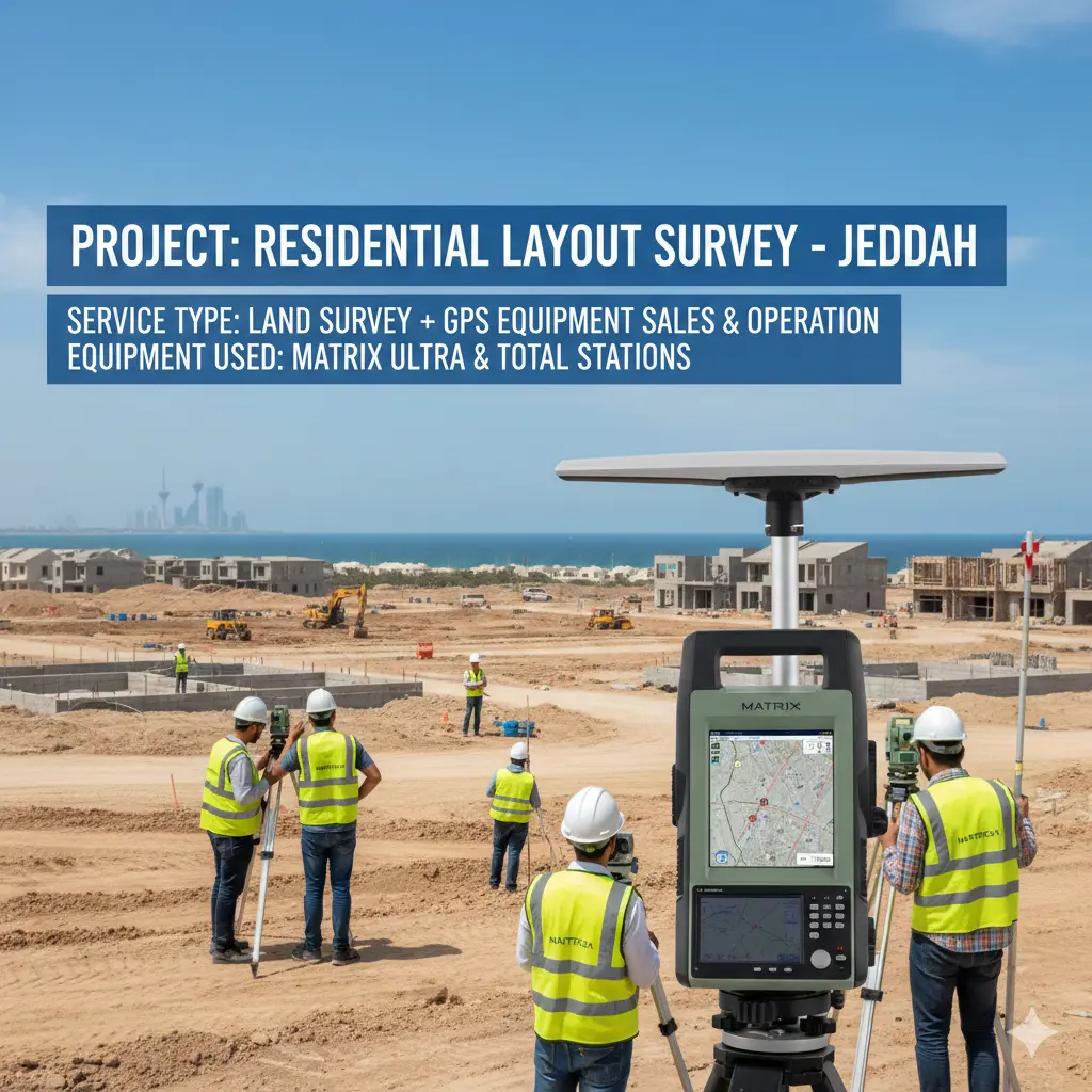 تنفيذ قياسات دقيقة لموقع مشروع تجاري وإداري، مع توثيق كل النقاط المرجعية والحدود، لضمان مطابقة المخططات الهندسية لأرض الواقع.